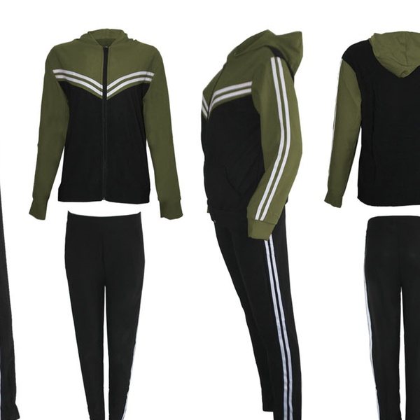 - Chevron stripe style features a long-sleeved chevron striped hooded zip jacket with twin side striped leggings