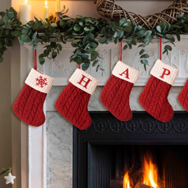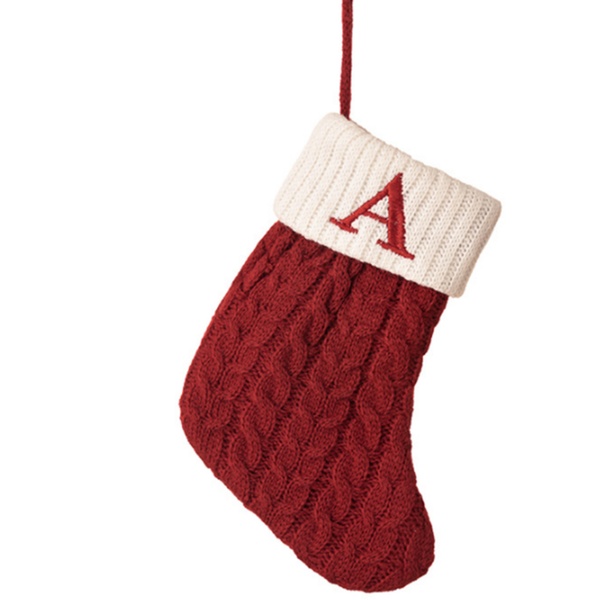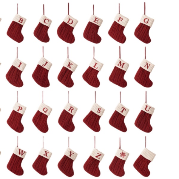 - Soft, comfortable knitted stockings featuring embroidered A–Z letters paired with a festive Santa hat.