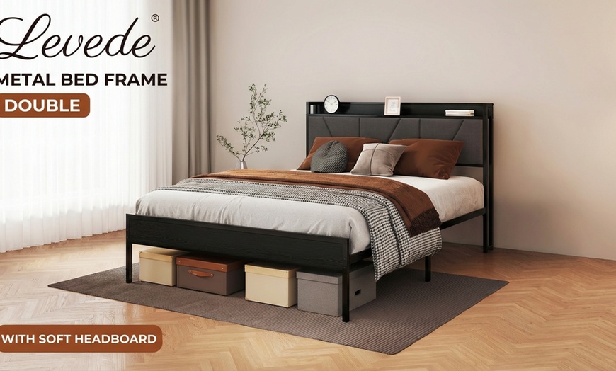 Today's Groupon offers Levede Upholstered Bed Frame with Storage Headboard and Steel Support, distributed by Sello Products UK Pty Limited.