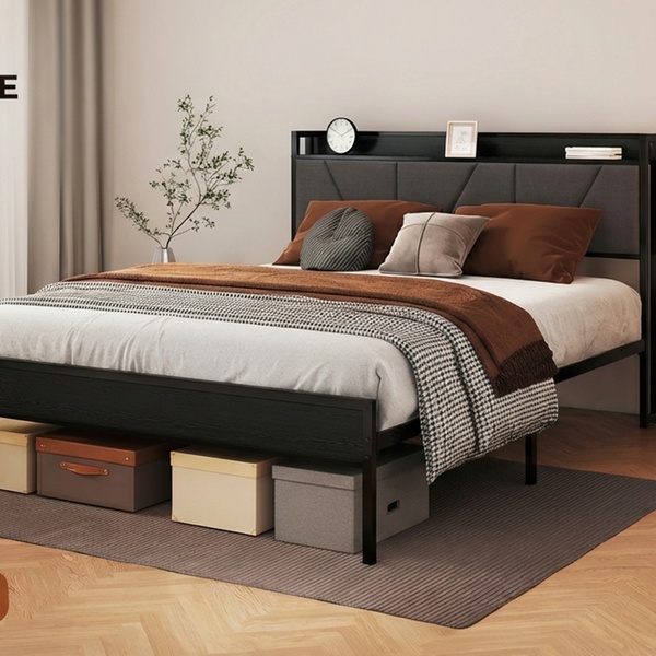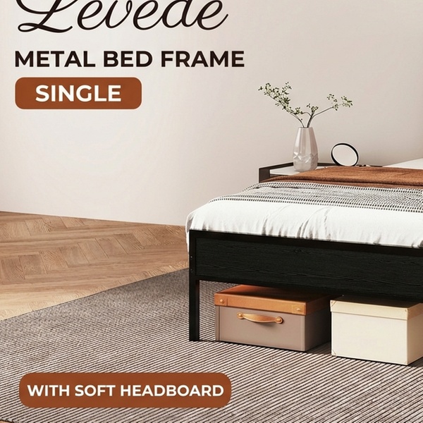 The Levede upholstered bed frame combines industrial-strength steel construction with the soft comfort of a linen-finished headboard