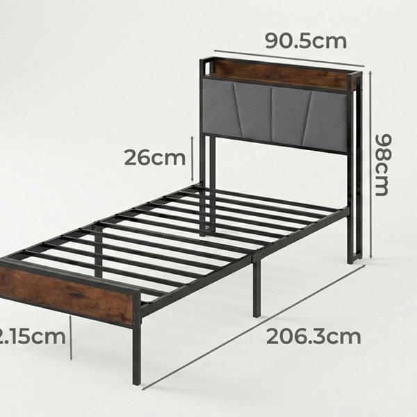- Single Bed Frame: 206.3cm (L) × 90.5cm (W) × 98cm (H)