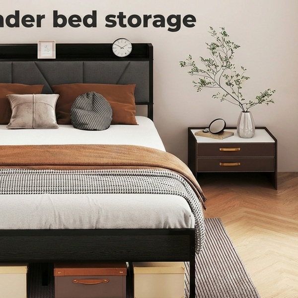 - Under-Bed Storage Space: 22.15cm clearance beneath the frame provides room for storage boxes and bins