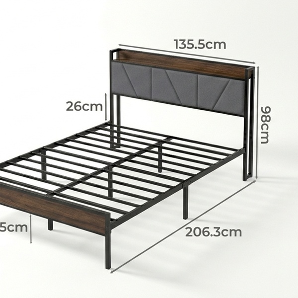 - Double Bed Frame: 206.3cm (L) × 135.5cm (W) × 98cm (H)