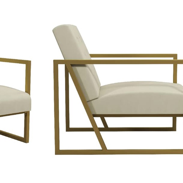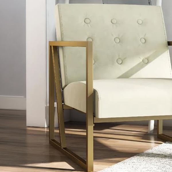 - Features a stylish gold frame with soft ivory velvet upholstery.