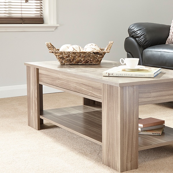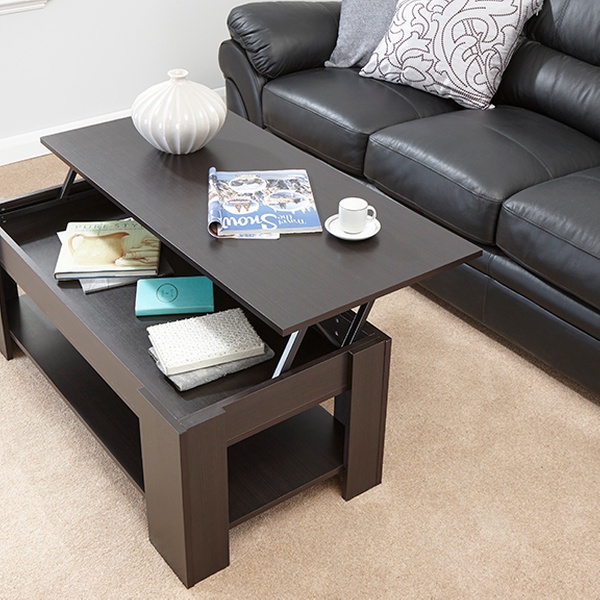 Ideal for home or office, this contemporary lift-top coffee table features additional interior storage space for magazines or books