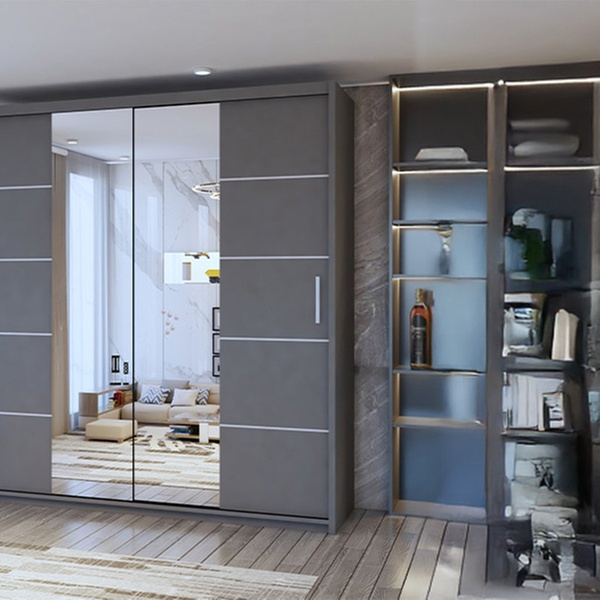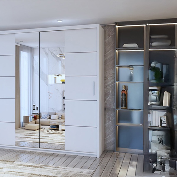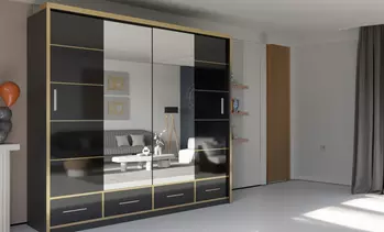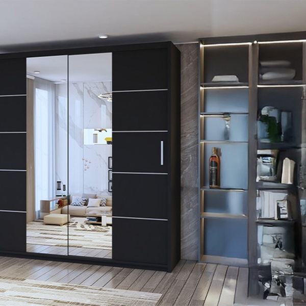 Featuring a sleek mirrored design, this wardrobe enhances any room while offering ample storage with smooth sliding doors.