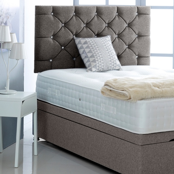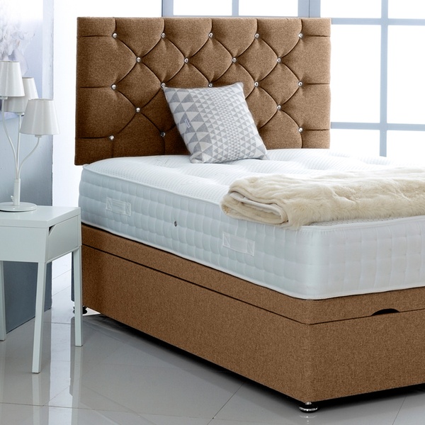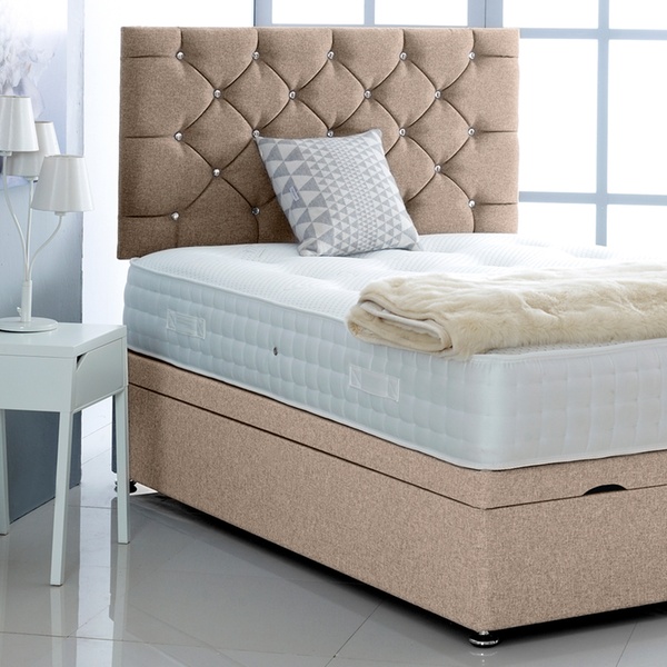 Today's Groupon offers Linen Ottoman Divan Bed with Memory Foam Spring Mattress and Chesterfield Headboard, distributed by Comfy Deluxe Ltd.