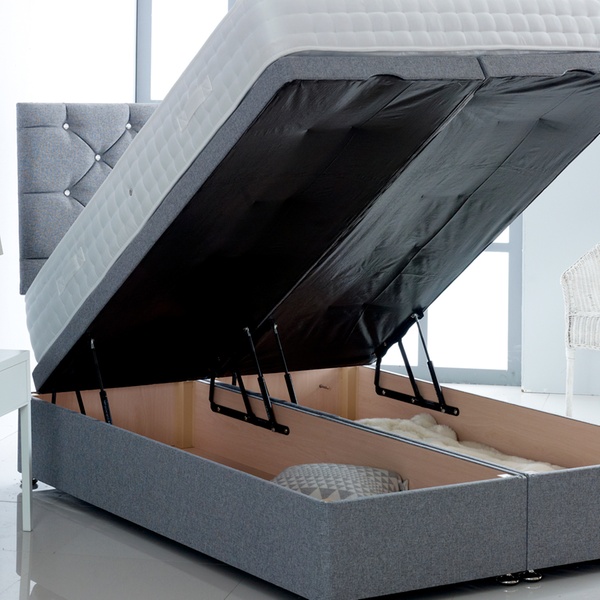 Maximise style, comfort, and storage with this elegant Ottoman Divan Bed Set, which includes a Memory Sprung Mattress and Chesterfield Headboard