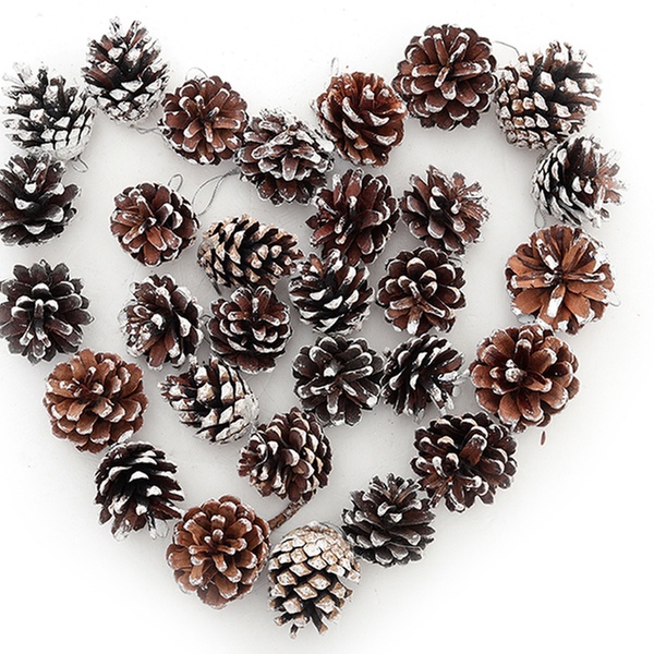 - Includes 30 real pine cones dyed in brown and white for decorative use.
