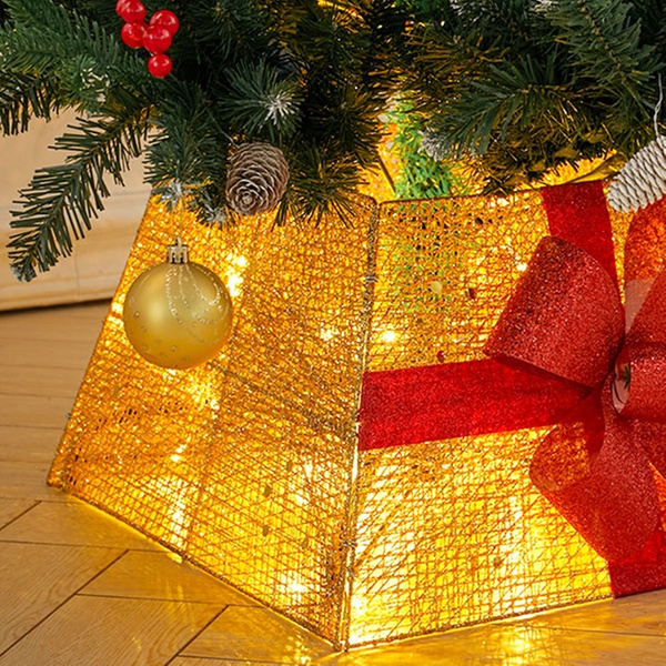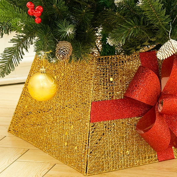 Transform the festive spirit with a vibrant tree collar basking in warm white light, bringing a cosy glow to holiday celebrations