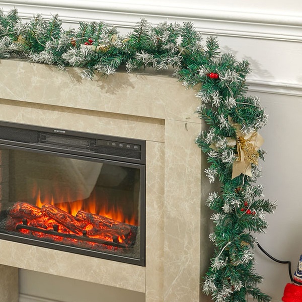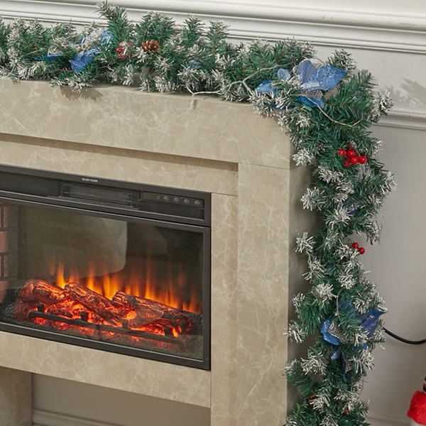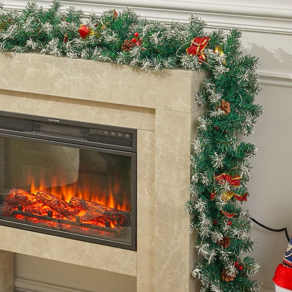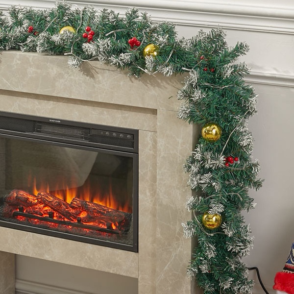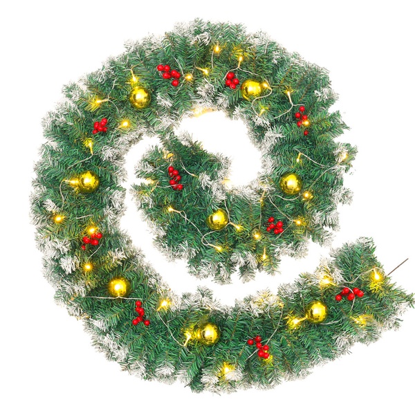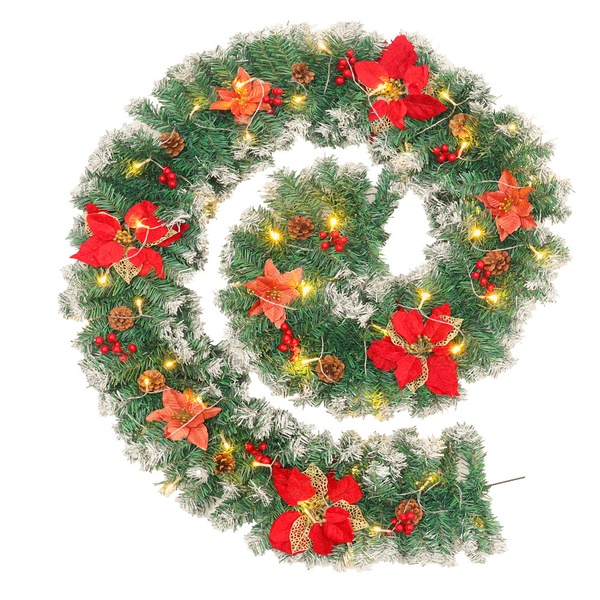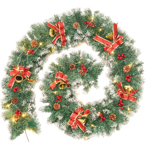 A 270cm pre-decorated garland featuring lush green foliage, frosted tips, pine cones, and berries, ideal for adding instant festive charm to doors, mantels, or bannisters.