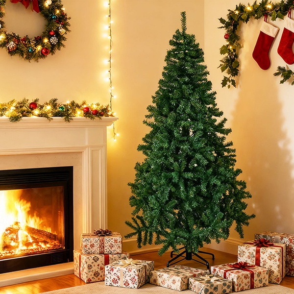 - Realistic PVC branches mimic natural pine needles for a lifelike appearance