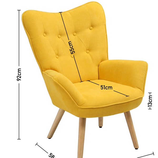 Living And Home Tufted Button Linen Wing Back Armchair with Wooden Legs