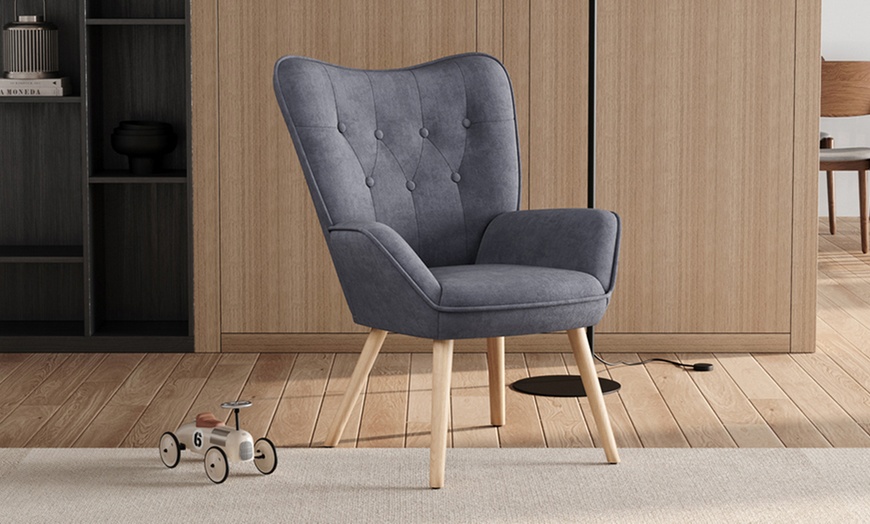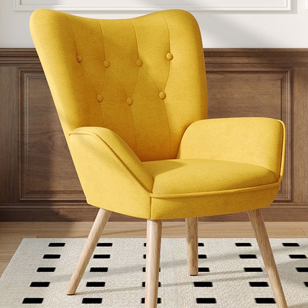 Today's Groupon offers Living And Home Tufted Button Linen Wing Back Armchair with Wooden Legs, distributed by Living And Home Limited.