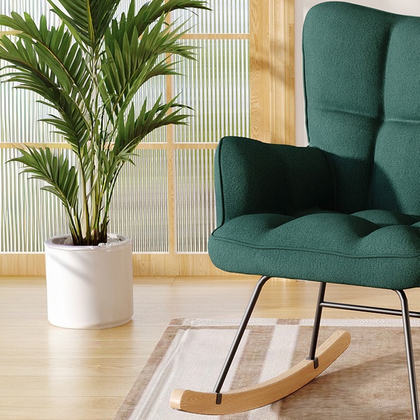 Crafted with soft Sherpa upholstery, this rocking chair offers a cosy haven ideal for relaxation in any corner of the home