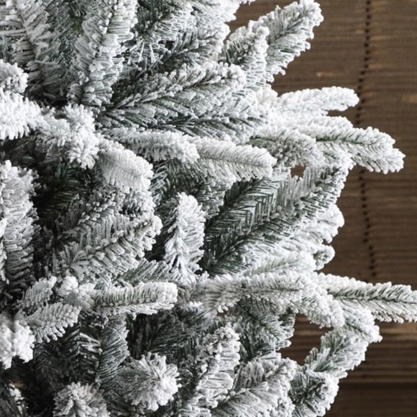 - Snow-kissed flocked branches add a festive, wintery touch to any room