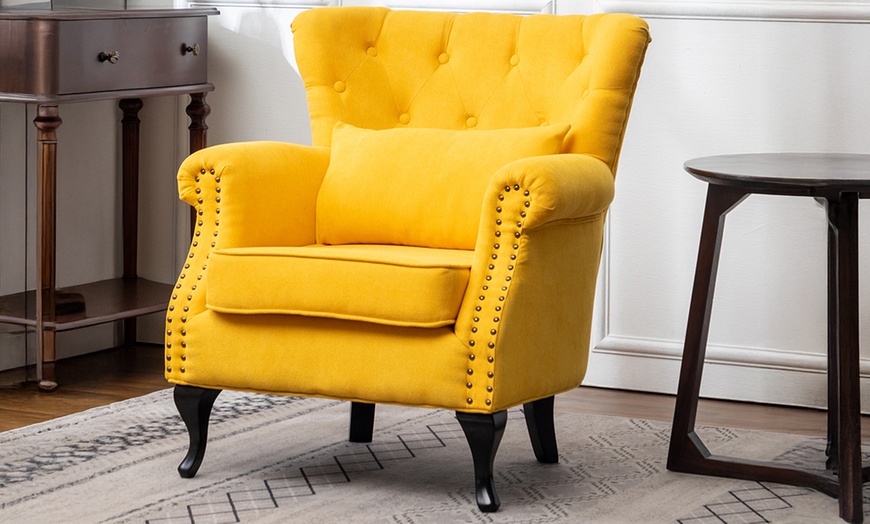 Today's Groupon offers Living And Home Yellow Upholstered Buttoned Wingback Armchair, distributed by Living And Home Limited.