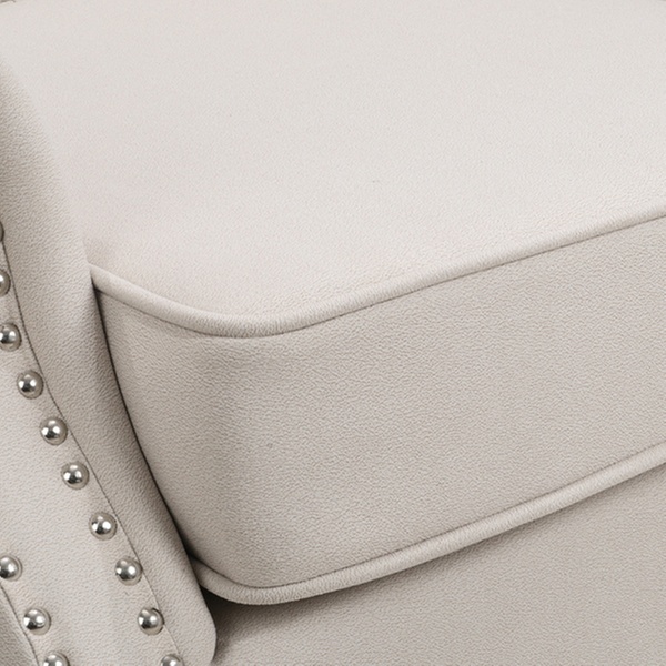 - Upholstered in soft, neutral-tone fabric that is smooth against the skin and durable for daily use