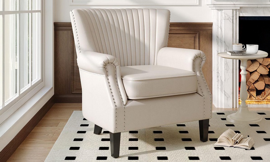 Today's Groupon offers Living And Home Elegant Tufted Upholstered Armchair with Waterfall Back and Wooden Legs, distributed by Living And Home Limited.