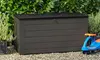 A spacious and durable 680L garden storage box with a reinforced sit-on lid, designed to keep outdoor essentials safe, dry, and neatly stored