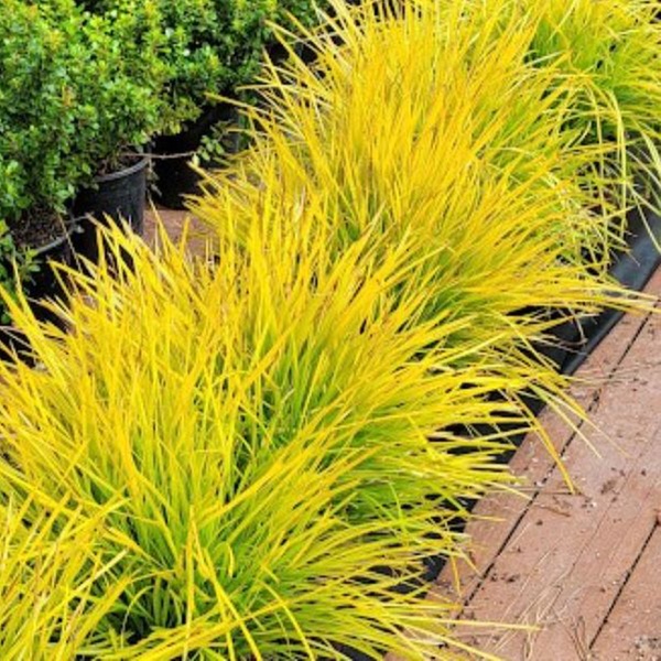 A striking grass-like perennial with vibrant golden foliage that adds year-round colour and texture, Ideal for modern landscapes, dry or coastal sites, and low-maintenance gardens, it delivers bold contrast and effortless elegance with minimal care.