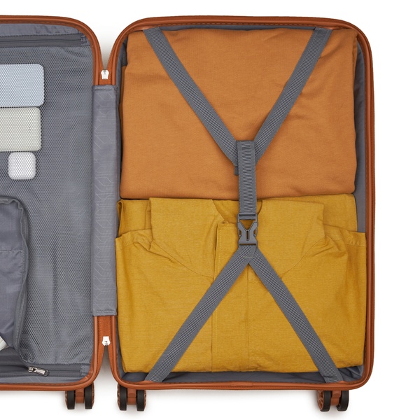 • One side includes adjustable cross-straps with a buckle for secure packing.