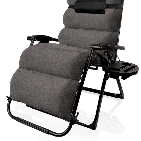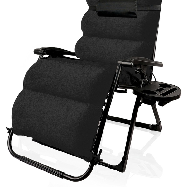 - Luxe zero gravity chairs with headrest, tray and extra wide padded cushion