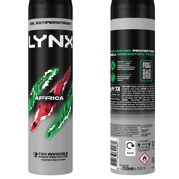 Lynx Antiperspirant Deodorant Spray XXL Africa 250 ml