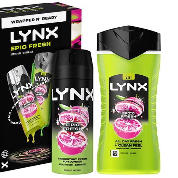 - Includes a full-size Lynx Epic Fresh Body Spray (150ml) and Bodywash (225ml).