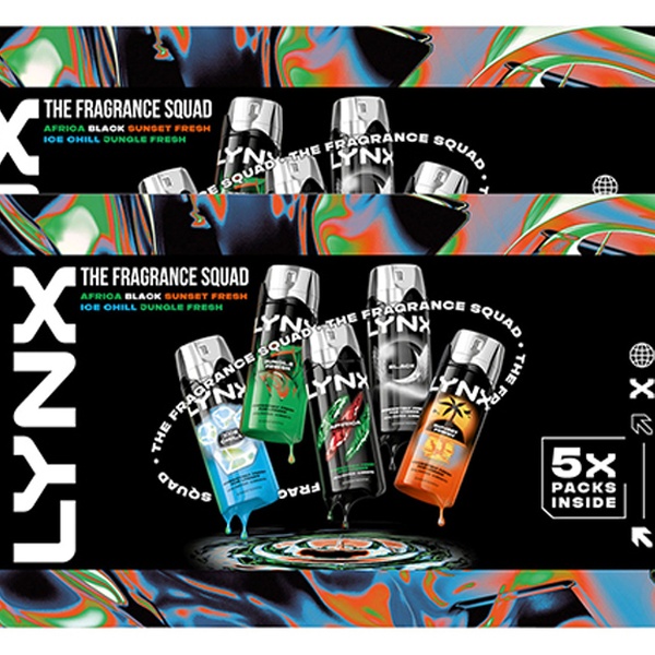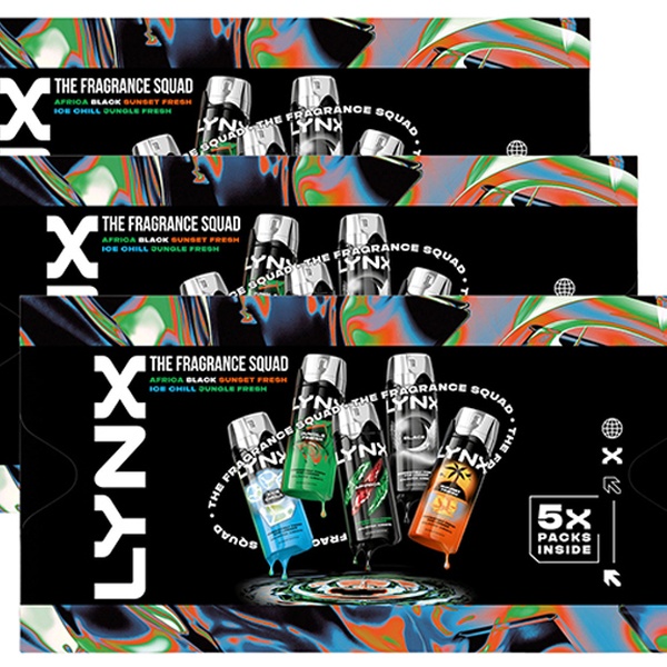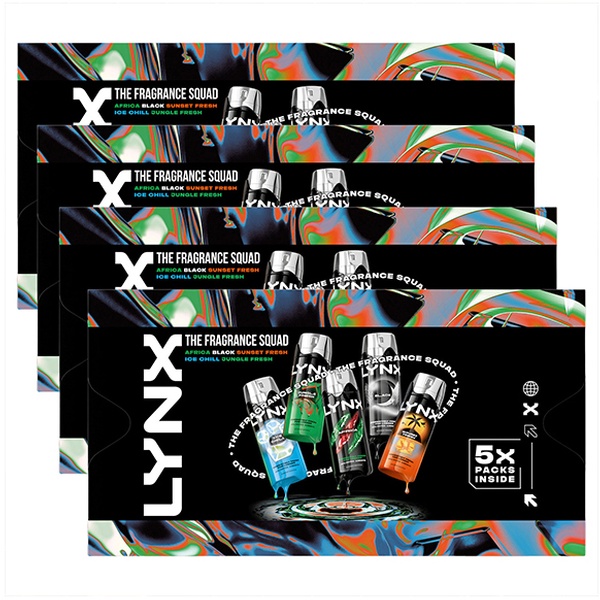 • Includes 5 iconic Lynx body sprays: Africa, Black, Ice Chill, Sunset Fresh & Jungle Fresh