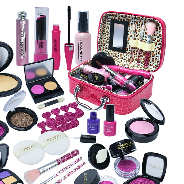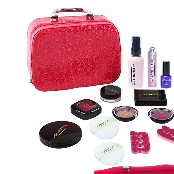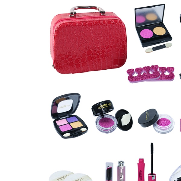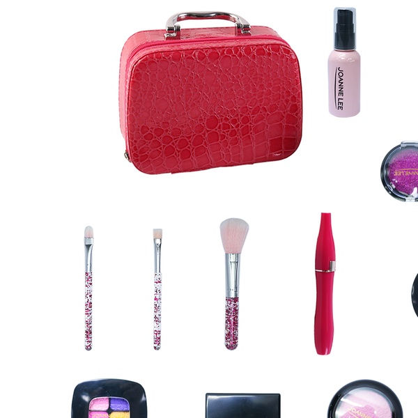 - Set includes a variety of makeup accessories including a cosmetic bag, nail separator, mock foundation, blush, lipsticks, makeup brushes and much more