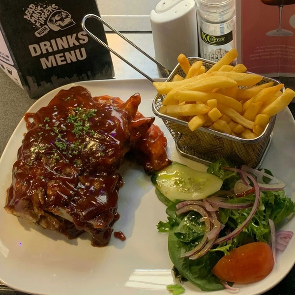 Mains: Any Pizza | Penne Carbonara | Beef or Vegetarian Lasagne | Gourmet Burgers (Classic, Bad-Ass, or Fillet) | Chicken in Peppercorn Sauce | Chicken Fajitas (Veg Option Available) | Chicken in Sweet BBQ Manhattan Sauce