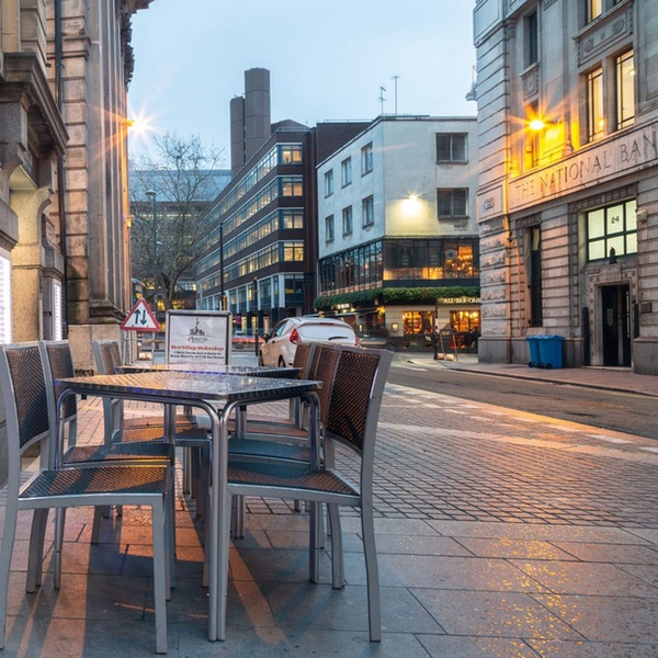 This eatery brings the bold flavours of New York cuisine to the centre of Liverpool. Situated in the city's business quarter, Manhattan specialises in sizzling burgers, freshly spun pizzas and handmade pastas. The kitchen also prepares Mexican-inspired fajitas and plenty of seafood and vegetarian options. The contemporary interior features colourful lighting, a checkerboard floor and flat-screen TVs, while the patio offers outdoor seating. The venue regularly plays host to live music and screens sporting events throughout the year.