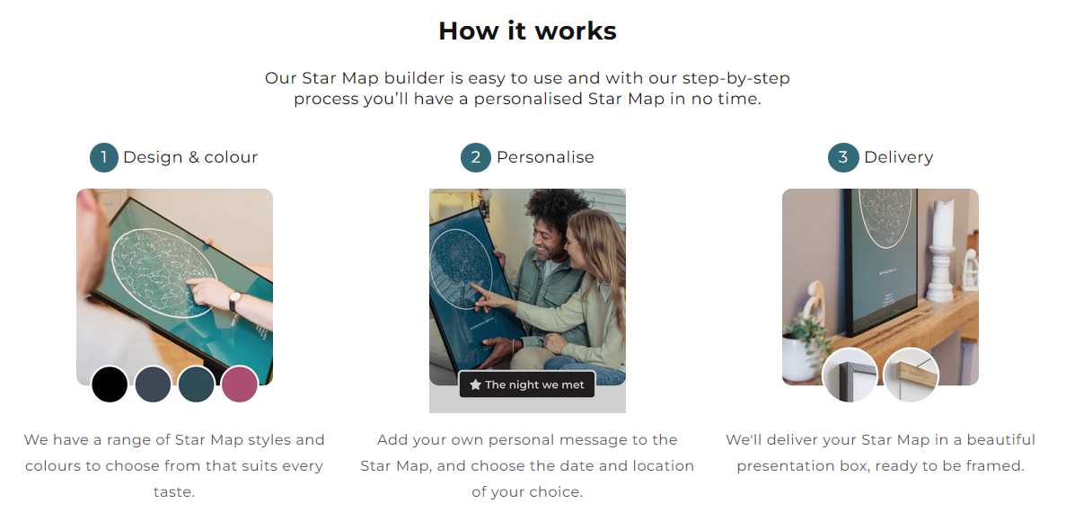From the background colour to the personal message, you can be sure of that “wow” factor when the recipient opens this magical gift and sees how you have tailored their very own night sky. All you need is a special date, location and some meaningful words.