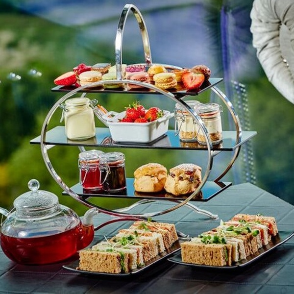 Two diners can enjoy traditional afternoon tea with a selection of sandwiches and pastries, accompanied by an optional glass of Prosecco
