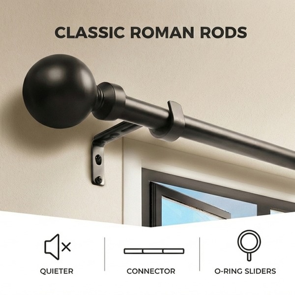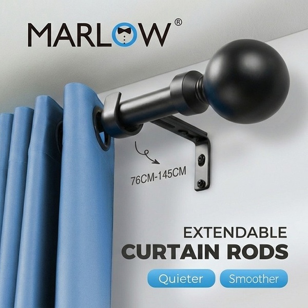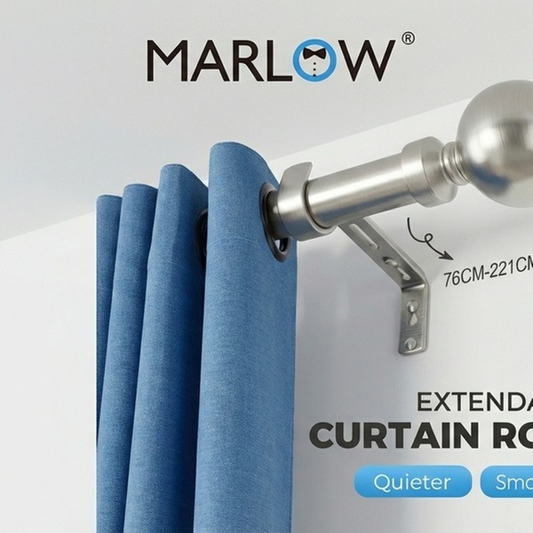 Complete your window setup with the Marlow Extendable Curtain Rod Sets. Designed for durability and smooth operation, these steel rods feature silencer O-ring sliders and elegant zinc alloy pommels for a refined finish.