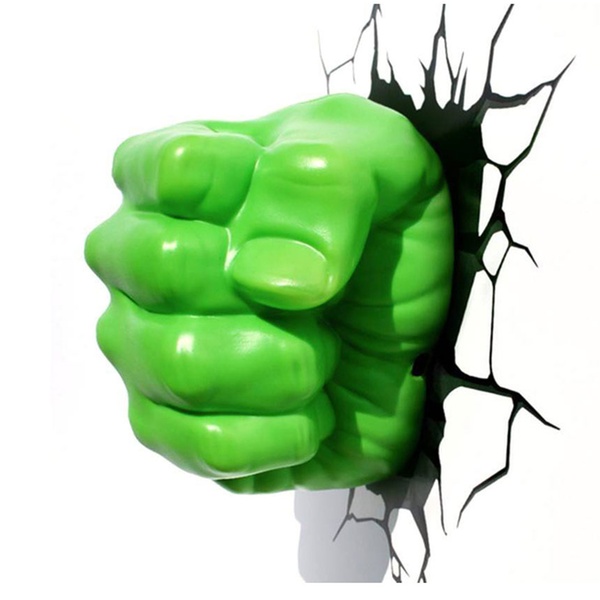 - Shaped like Hulk's fist with a cracked sticker for effect