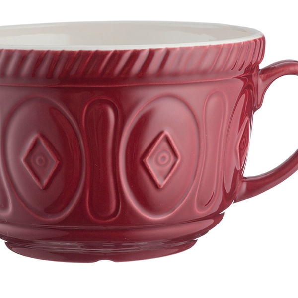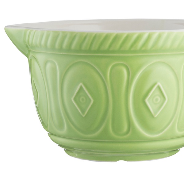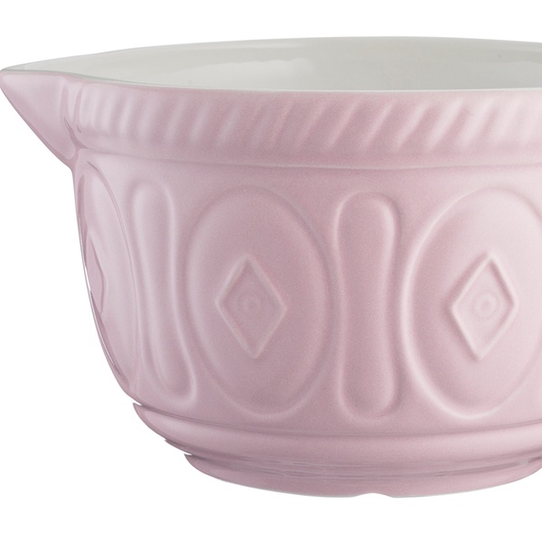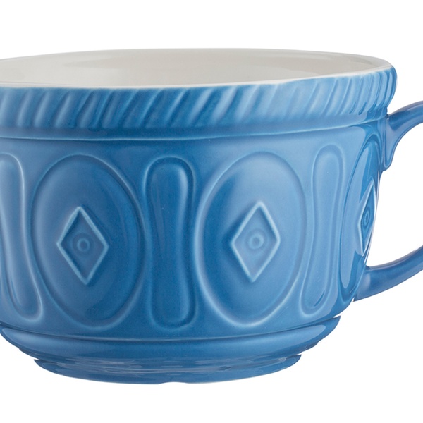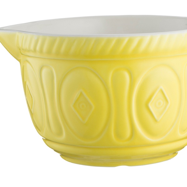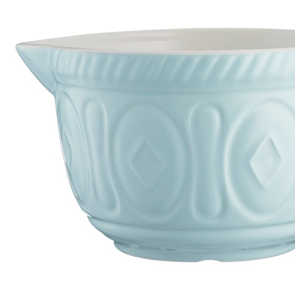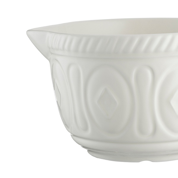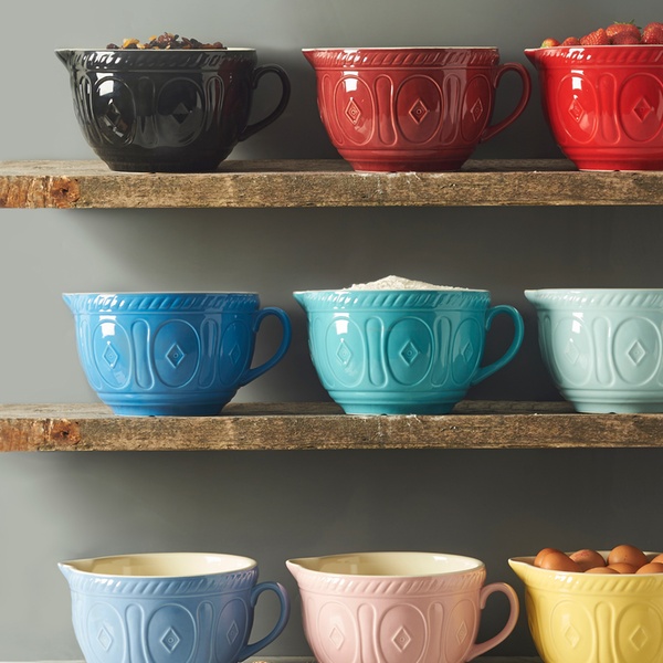 This batter bowl is large enough to whisk and mix ingredients in, featuring a pouring lip and handle for convenient use