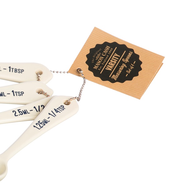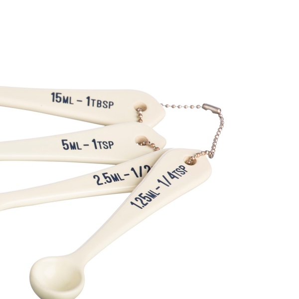 - The spoons measure 15ml, 5ml, 2.5ml and 1.25ml