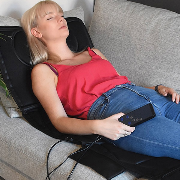 Experience the ultimate relaxation with this Massage Mat featuring 5 massage modes, 3 intensity levels, heat function, and easy-to-use remote control