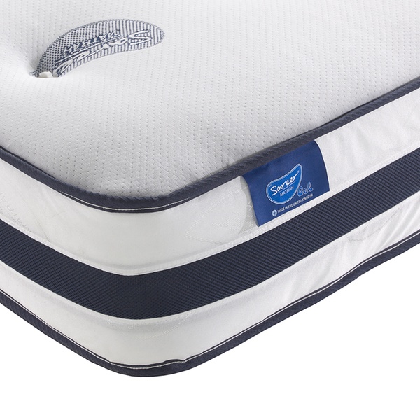 - Features a traditional open coil spring system with rows of springs running from head to toe, connected into a single unit by strong helical spiral wires.
