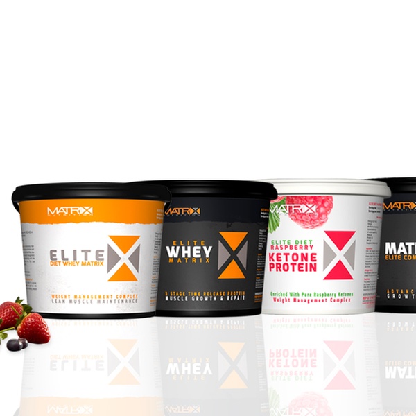 - Matrix Elite protein powder contains amino acid, milk protein concentrate, and soya protein