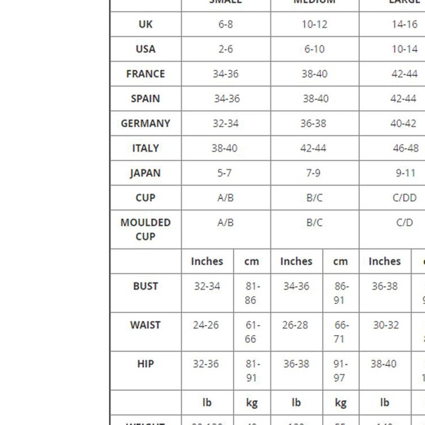 | Size | UK Size | Bust (cm) | Waist (cm) | Hip (cm) | Glove length (cm) | Glove width at cuff (cm) | Glove width at wrist (cm) |