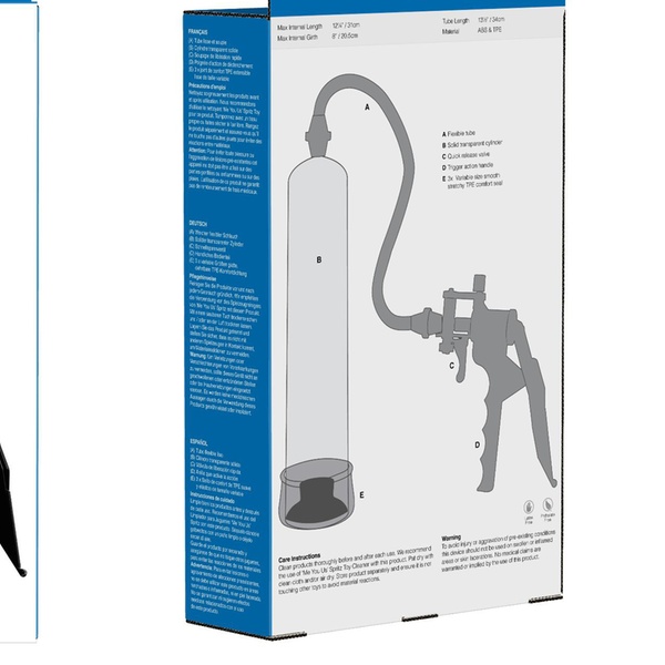 Featuring a transparent design, this 12” extra large penis pump from Simply Pleasure comes with three multi-coloured sleeves