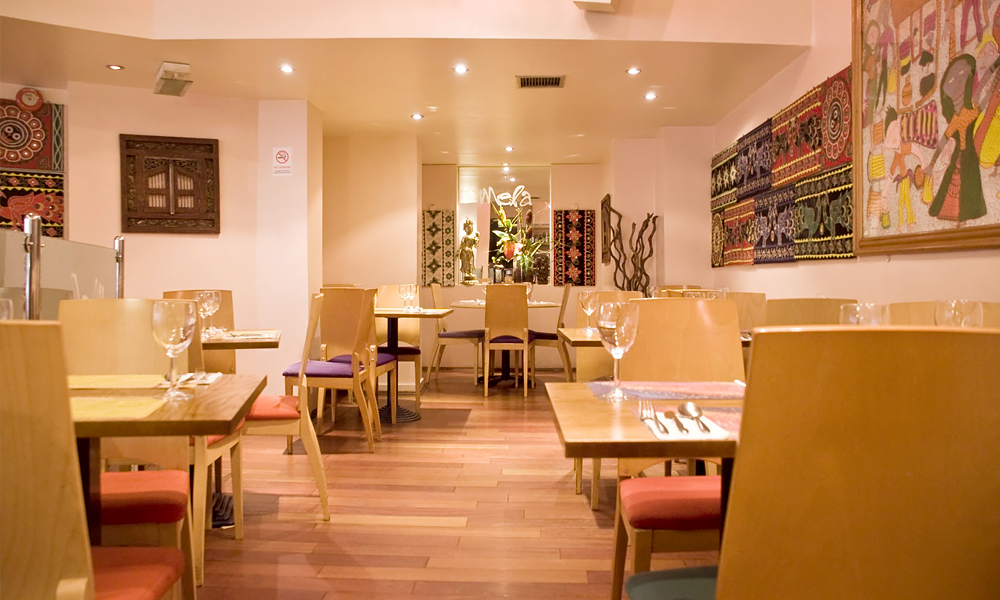 Mela Restaurant is centrally-located in Leicester Square and cooks up a wealth of Indian cuisine. The restaurant has a light and airy decor with warming colours to create a haven from the bustling city. The restaurant also offers cookery classes and is open seven days a week.