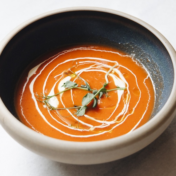 Lobster Bisque – King asparagus, saffron aioli, purple shiso