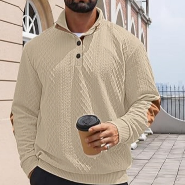 - Quarter-button design with a 1/4 button-up collar and elastic ribbed cuffs for a stylish finish