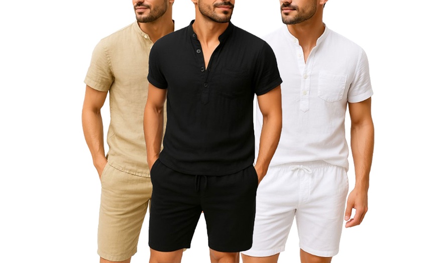 Today's Groupon offers Men's Summer Co-Ord Set Featuring Stand Collar T-Shirt, distributed by Jaoyeh Trading Ltd.