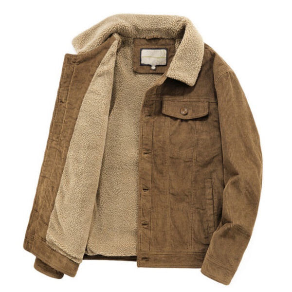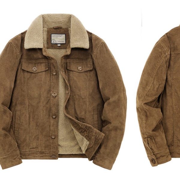 - Vintage corduroy outer with padded inner for warmth without bulk