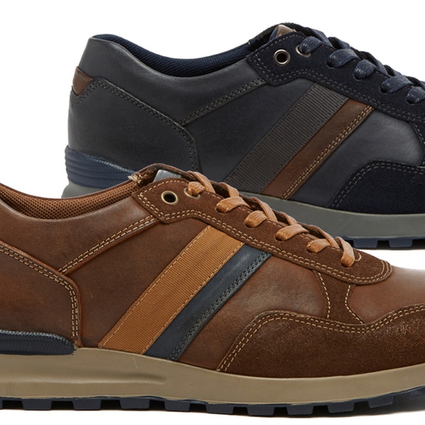 Crafted from a blend of nubuck and suede for soft and textured finish, these retro-inspired shoes feature stripe detail and padded collar